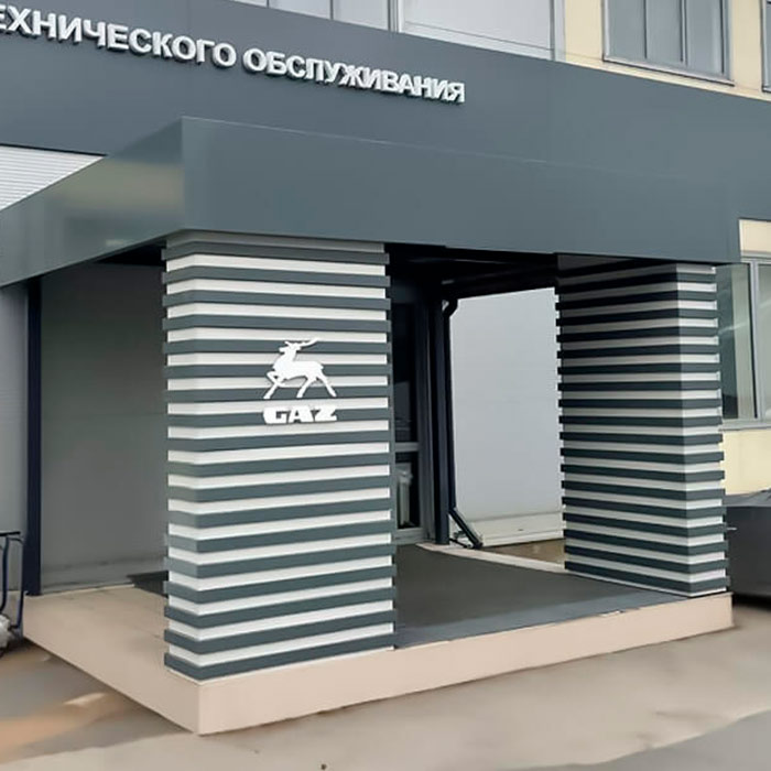 Козырьки и навесы из алюминиевого композита широко применяются во внешней отделке фасадов и рекламных конструкциях. Композитные козырьки не только защищают от осадков и ультрафиолетовых лучей, но и служат важным элементом визуальной идентификации входной группы здания.