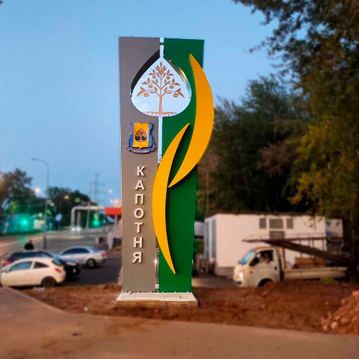 Мы учитываем несколько факторов при изготовлении: высоту, место установки (зависит от сложности фундаментного основания), габариты мест, количество, световое или несветовое оформление, тип подсветки, мощность, внешняя или внутренняя.